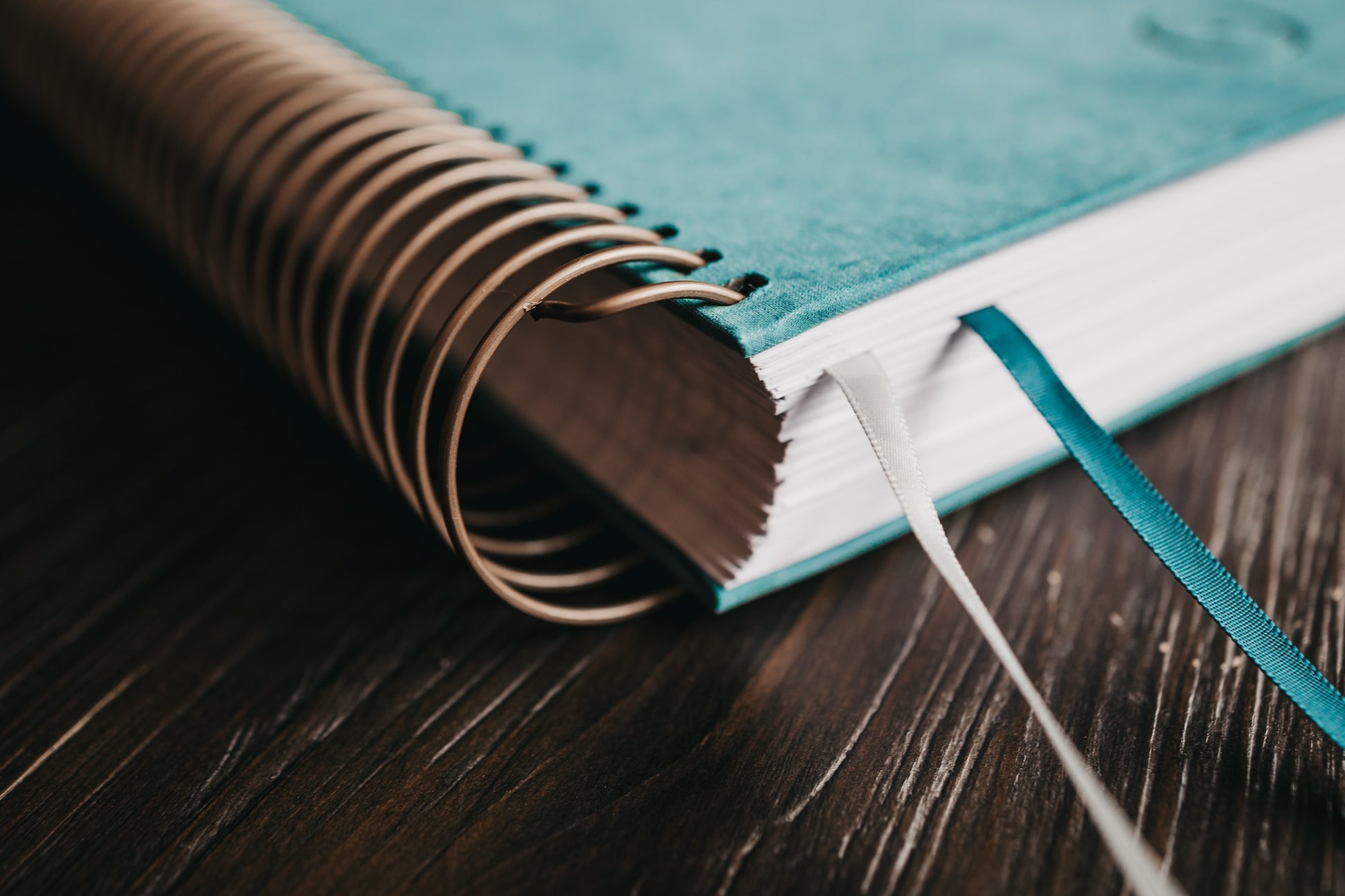 Bonus: Satin ribbon bookmarks in teal and silver to keep your place in the diary